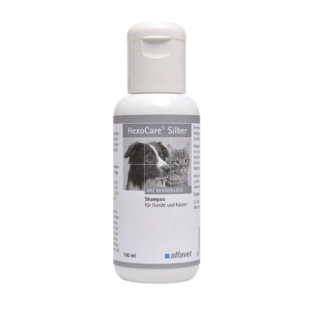 HexoCare® SilberShampoo wird zur Reinigung von Haut und Fell von Haustieren verwendet, insbesondere, wenn eine starke reinigende Wirkung erwünscht ist. Der beim Shampoonieren entstehende Schaum beseitigt abgestorbene Zellen und anderes organisches Material und damit die Lebensgrundlage für Bakterien und Hefepilze sowie unangenehme Gerüche. Wertvolle pflanzliche Inhaltsstoffe haben gleichzeitig eine pflegende Wirkung.