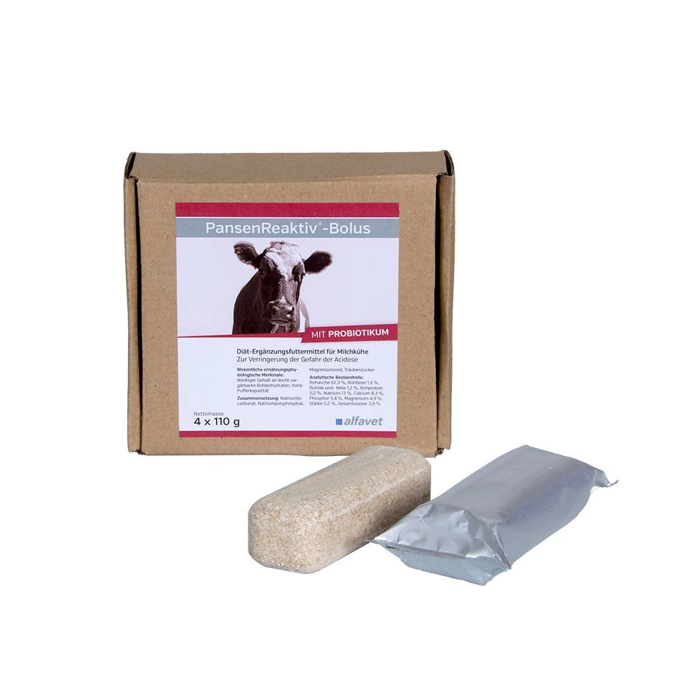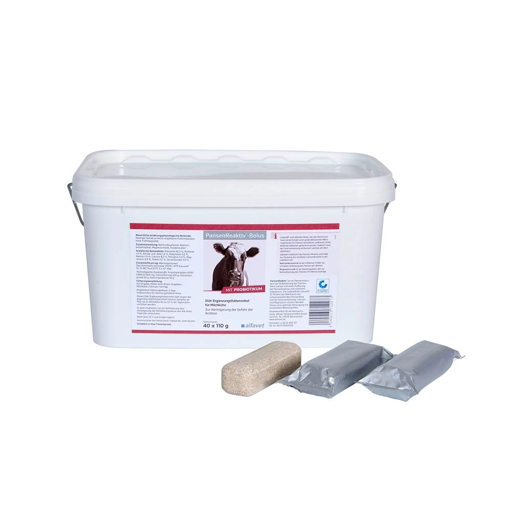 PansenReaktiv®-Bolus ist ein Pansenstimulans zur Stabilisierung der Pansenflora und zur schnellen Pufferung bei Pansenacidose und nutritiven Imbalancen. Die Lebendhefe Levucell® SC fördert das Wachstum der cellulosespaltenden Pansenflora und die Faserverwertung. Calcium und Magnesium sichern darüber hinaus eine optimale Versorgung mit essentiellen Mineralstoffen.