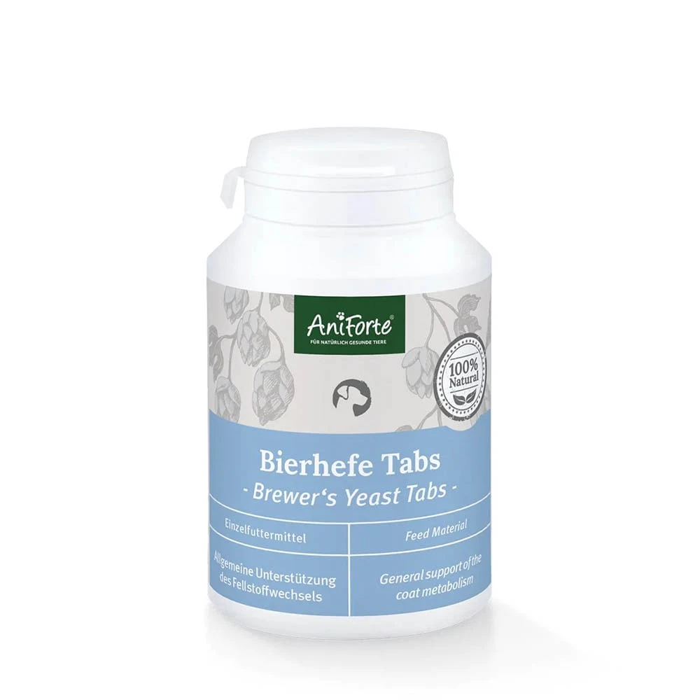 AniForte® Bierhefe Tabs sind hochwertige Tabletten mit wichtigen Nährstoffen zur täglichen Versorgung. Bierhefe unterstützt eine gesunde Entwicklung Ihres Hundes und trägt zu einem glänzenden und kräftigen Haarkleid bei. So profitieren besonders Fell und Haut Deines Hundes von der geballten Ladung natürlicher Pflanzenpower.