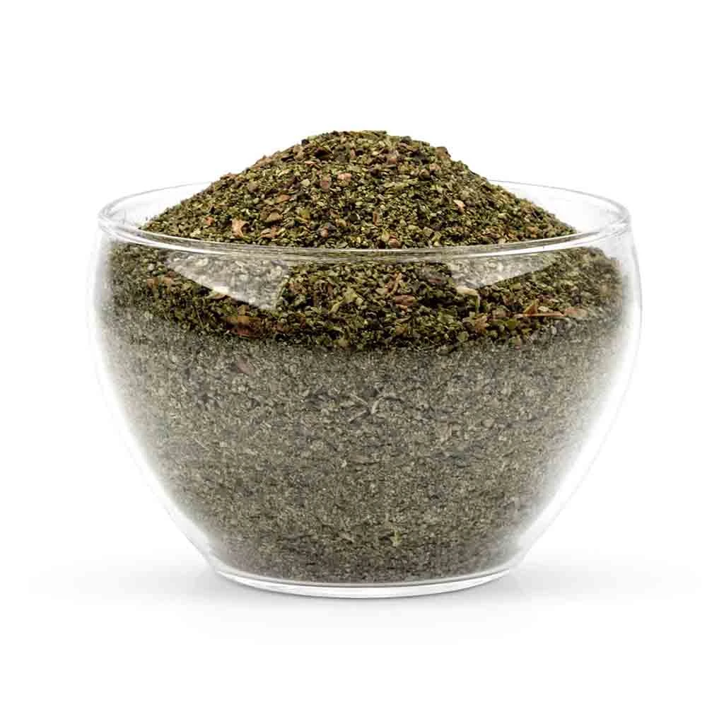 75 % Seealgenmehl, Apfeltrester geschnitten, Petersilienblätter fein gemahlen, 5 % Pfefferminzblätter Feinteile