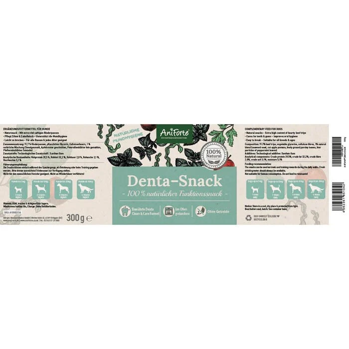 AniForte® Denta-Snacks – die einfachste Art der Zahnpflege bei Deinem Hund. Was gibt es Schöneres als Deinen Vierbeiner zu belohnen und ihm gleichzeitig etwas Gutes zu tun. AniForte® Denta-Snacks vereint beides, zudem sind sie die idealen Begleiter für jede Situation und dürfen nicht fehlen!