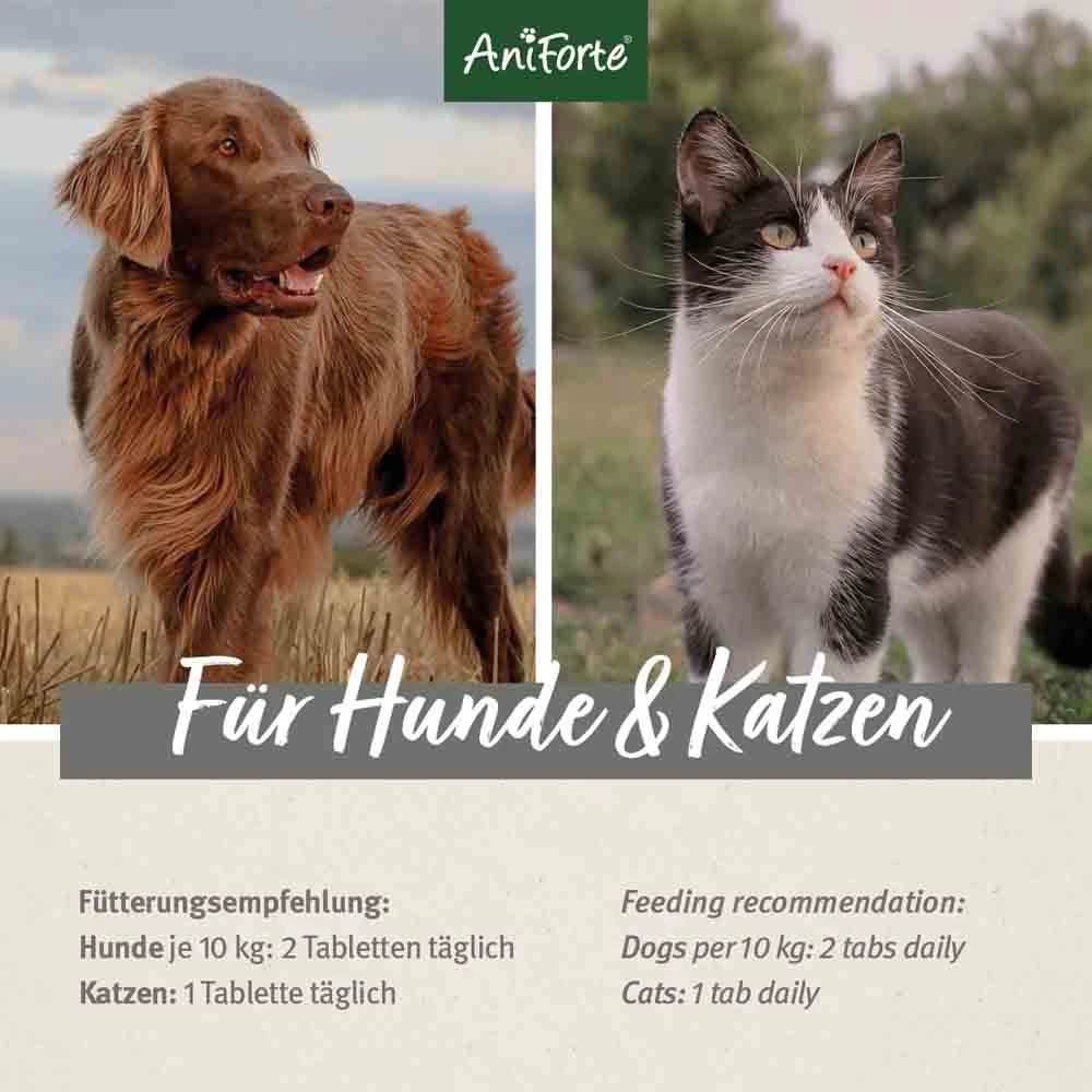 AniForte® MultiVETAL Tabs bestehen zu 100 % aus natürlichen Zutaten mit einer besonders hohen Bioverfügbarkeit. Die Vitalstoffe können dadurch besser verwertet werden und unterstützen das Wohlbefinden Ihres Lieblings. Kombiniert mit unseren speziellen Misch- und Mahlverfahren sowie der schonenden Pressung sind AniForte® MultiVETAL Tabs bestens auf die notwendigen Bedürfnisse Ihres Tieres abgestimmt. Die Tabs erfreuen sich an einer hohen Akzeptanz und können problemlos zum täglichen Futter gefüttert werden.