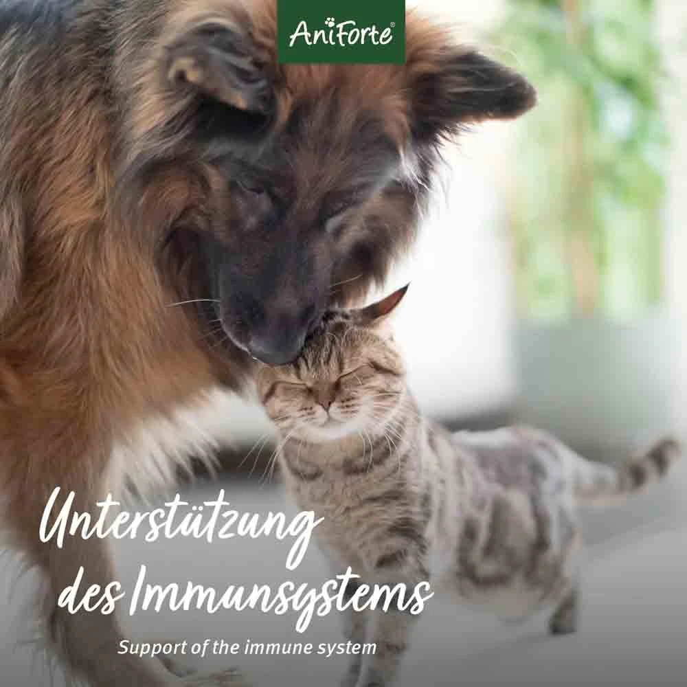 AniForte® MultiVETAL Tabs versorgen Ihren Vierbeiner mit wichtigen Nährstoffen. Das Naturprodukt enthält auserlesene Rohstoffe wie Acerola Pulver, Acai-Pulver und Omega-3-Fischmehl. Zudem haben Studien gezeigt, dass Omega-3-Fettsäuren das Immunsystem bei Tieren auf natürliche Weise unterstützen können. Wir empfehlen daher eine regelmäßige Einnahme zum Ausgleich des Vitamin- und Mineralstoffhaushalts.