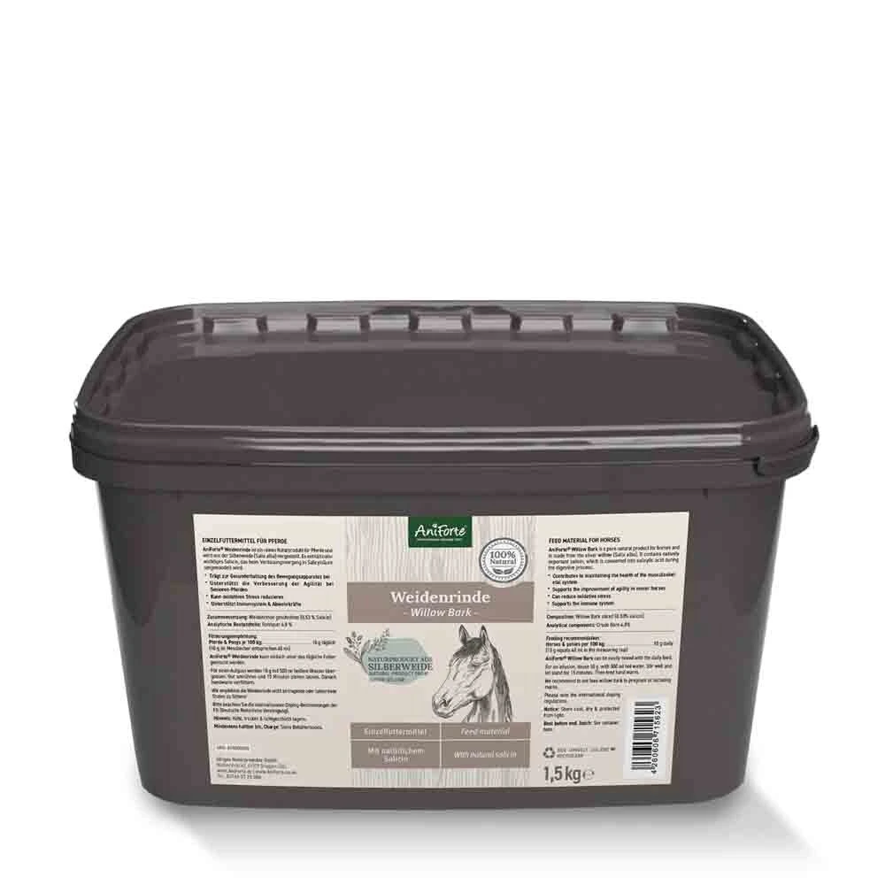 Als natürliches Einzelfuttermittel kann die Weidenrinde für Pferde recht problemlos verfüttert werden. Zum einen prophylaktisch, zum anderen aber auch, wenn Ihre Pferde akute Hilfe benötigen. Bereits in der Antike wurde Weidenrinde an Pferde verfüttert, wenn diese an Beschwerden wie Fieber, Schmerzen oder Entzündungen gelitten haben. Schmerzen und Entzündungen sind häufige Begleiterscheinungen von Gelenkproblemen bei Pferden. Gelenkerkrankungen zählen bei Pferden zu den häufigsten Ursachen von Lahmheit. Zudem haben Studien an Tieren gezeigt, dass Weidenrinde einen positiven Effekt auf oxidativen Stress hat und das Immunsystem der Tiere unterstützen kann.Besonders wichtig dabei ist, dass die Weidenrinde für Pferde auffallend wirksam ist, wenn nicht ganze Abschnitte der Weide, sondern hauptsächlich die Rinde verfüttert wird. Denn nachweislich sind die effektivsten Inhaltsstoffe der Weide in der Rinde des Holzes vorhanden.