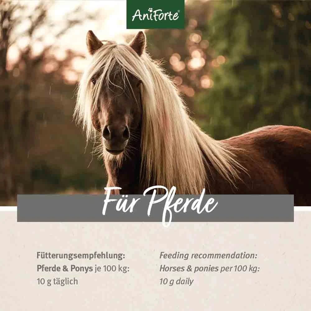 Pferde und Ponys je 100 kg: 10 g täglich