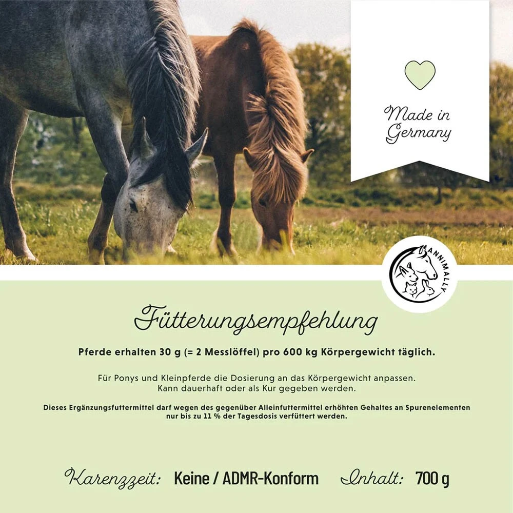 Pferde erhalten bei einem Gewicht von 600 kg je 30 g pro Tag. KARENZZEIT: