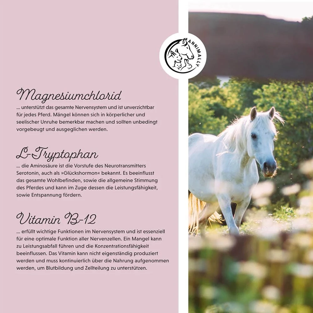 Wenn das Pferd unter anhaltendem Stress zu leiden scheint und kleinste Veränderungen es aus der Fassung bringen, dann ist das Relax Liquid die optimale Wahl. Ein Mangel an essenziellen Nährstoffen kann das gesamte Nervensystem beeinträchtigen und sogar die Leistungsfähigkeit des Pferdes beeinflussen. Die einzigartige Kombination von Baldrian und Hopfen kann dabei helfen, Stressreaktionen präventiv zu vermeiden und ist auch in akuten Fällen äußerst wirkungsvoll. Der Saft ist gut verträglich, enthält keinen zugesetzten Zucker und wirkt auf natürliche Weise unterstützend.