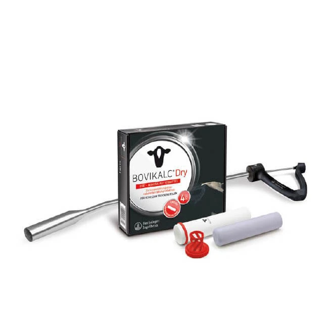 Der Bovikalc Dry ist ein Mineralfuttermittel für Tiere zur Unterstützung einer reduzierten Milchproduktion nach dem Trockenstellen. Der Mineralstoffbolus (196 g) enthält eine spezielle Formulierung aus verschiedenen Salzen, umgeben von einer schützenden Ummantelung. Nach der Eingabe löst er sich im Pansen innerhalb von 30 Minuten auf. Die leichte metabolische Azidose kann einen hemmenden Effekt auf die Milchproduktion ausüben. Zusätzlich reduziert die saure Stoffwechsellage vorübergehend die Futteraufnahme und trägt so nach dem Trockenstellen zu einer niedrigeren Milchproduktion bei.