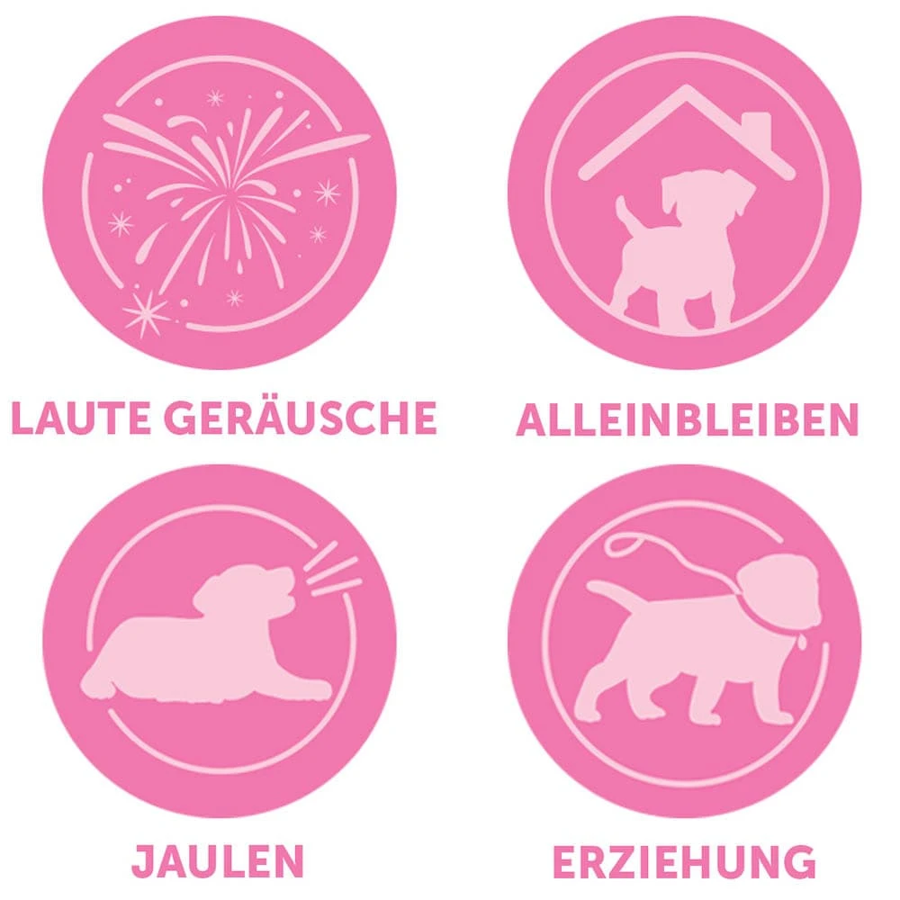 Ihnen und Ihrem Welpen in vielen anderen Situationen, z.B. beim Entdecken der neuen Umgebung, beim Durchschlafen, Alleinbleiben, Autofahren und bei Angst vor lauten Geräuschen.