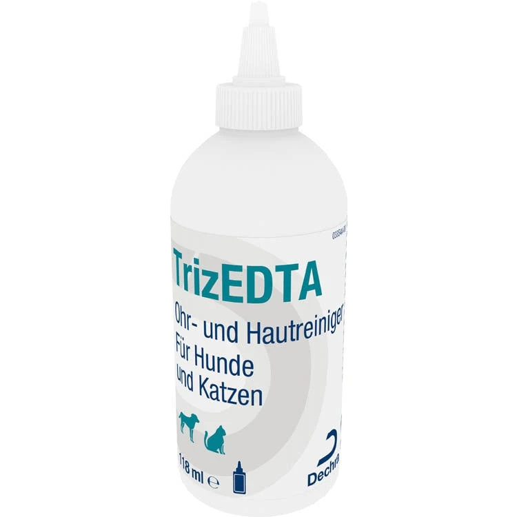 Vor der ersten Entnahme weiße Verschlusskappe abdrehen und Siegel entfernen*. Vor Gebrauch gut schütteln. Bei Verabreichung sollte TrizEDTA am besten körperwarm sein. In den Gehörgang füllen oder auf betroffene Hautstellen auftragen. Die Ohrbasis sanft für eine gute Verteilung massieren. Anschließend aus der Ohröffnung austretende Flüssigkeit mit einem Tuch aufsaugen. Wiederholung der Anwendung nach Bedarf oder tierärztlicher Anweisung.