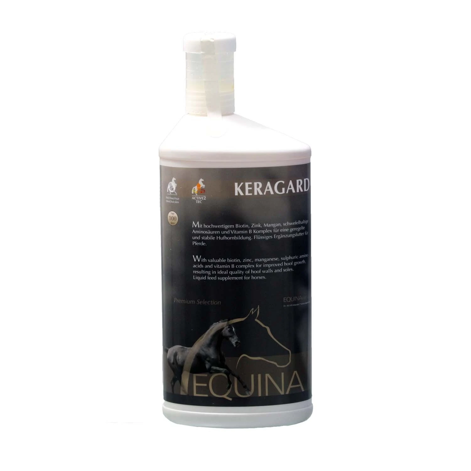 Equina KERAGARD enthält die essentiellen Keratinbildner in einer besonders biologisch hochwertigen und flüssigen Formulierung. Dadurch wird eine schnelle, sichere Aufnahme und Umsetzung gewährleistet. Die Hufhornbildung wird stabilisiert, der Aufbau intakten und belastbaren Hufhornes gefördert und auch Fell- und Haarkondition verbessert.