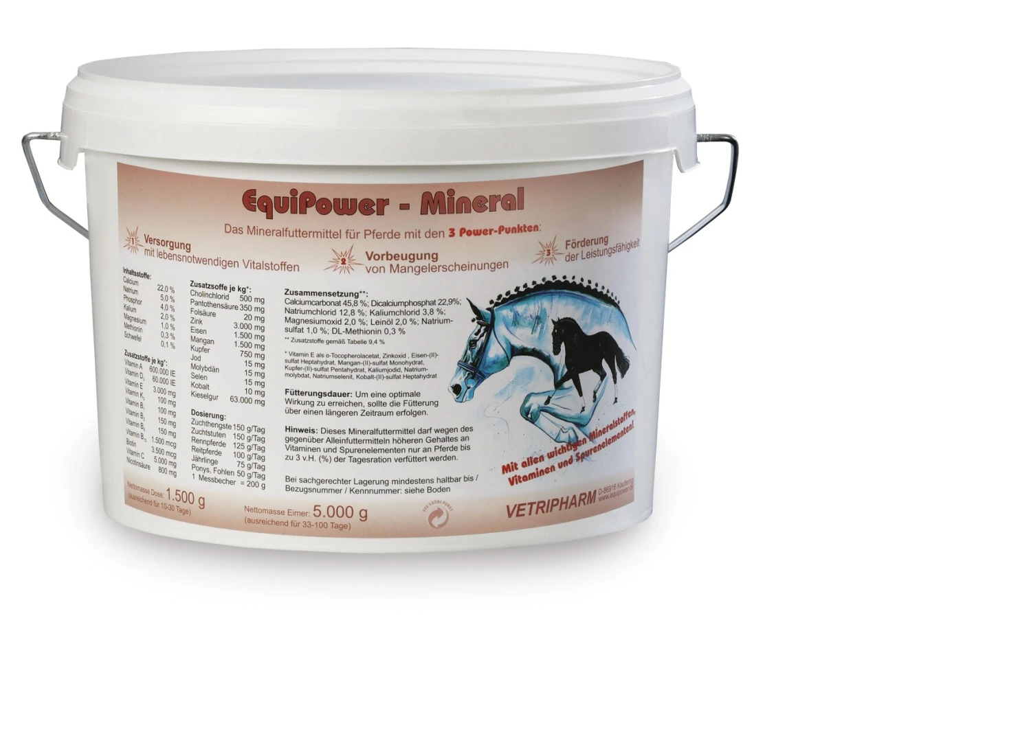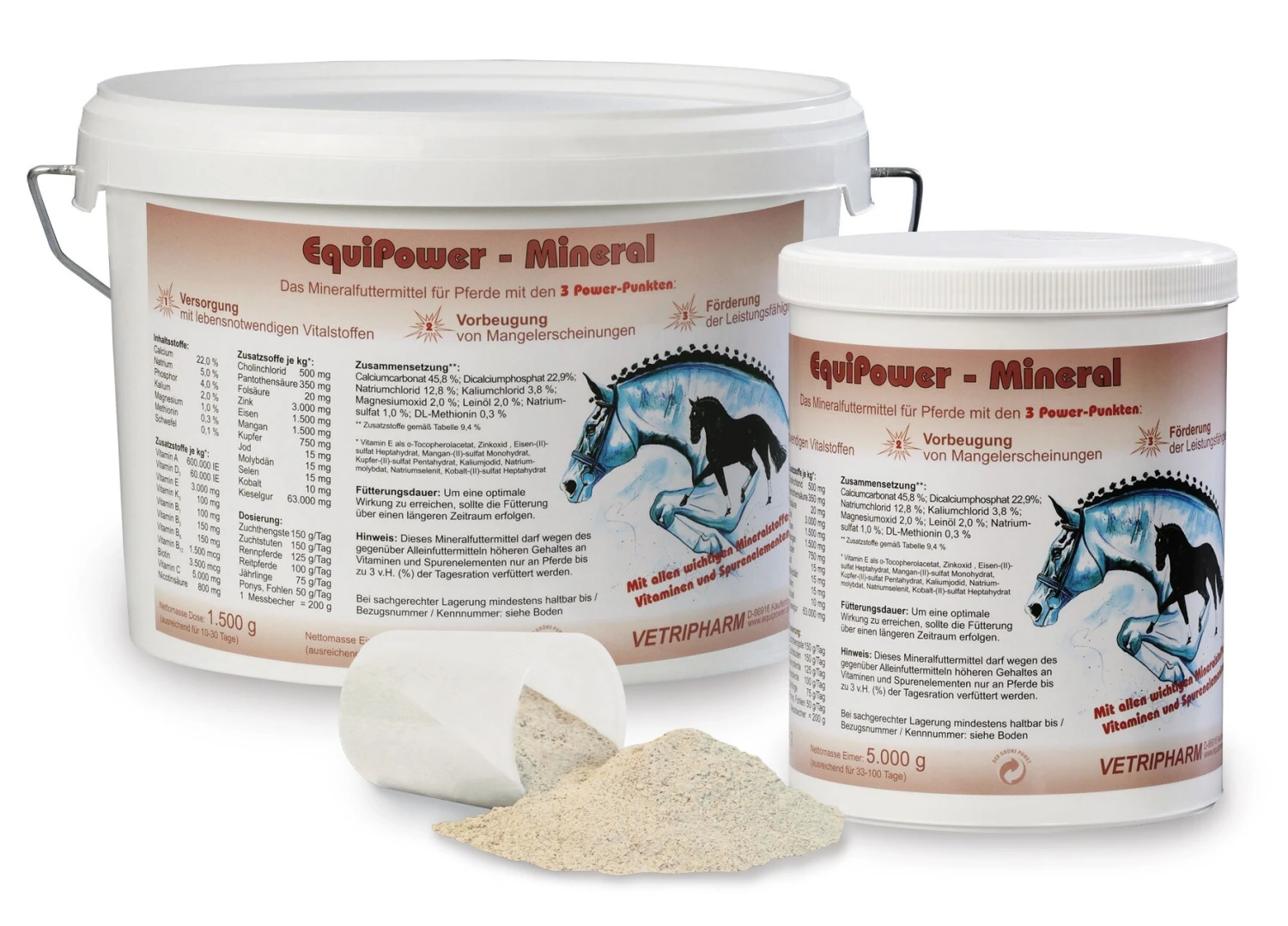 EquiPower – Mineral ist ein klassisches, hochkonzentriertes Mineralfutter mit allen Mineralien, Vitaminen und Spurenelementen, welches dem Pferd eine optimale Nährstoffversorgung bietet, die Widerstandskraft aktiviert und die Leistungsfähigkeit fördert.
