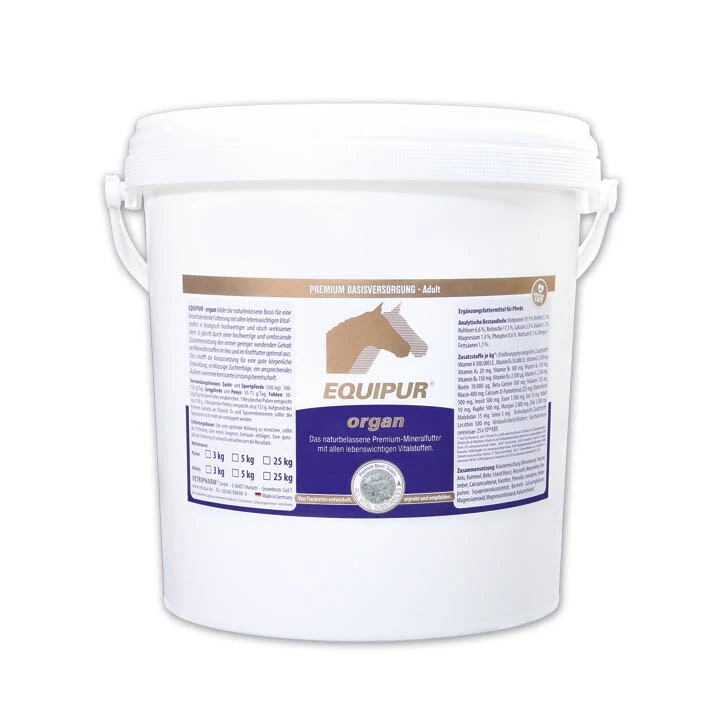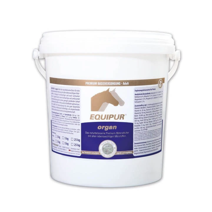 EQUIPUR – organ bildet die naturbelassene Basis für eine bedarfsdeckende Fütterung mit allen lebenswichtigen Vitalstoffen in biologisch hochwertiger und rasch wirksamer Form. Es gleicht durch seine umfassende Zusammensetzung den immer geringer werdenden Gehalt an Mikronährstoffen im Heu und im Kraftfutter optimal aus. Dies schafft die Voraussetzung für eine gute körperliche Entwicklung, erstklassige Zuchterfolge, ein ansprechendes Äußeres sowie eine konstante Leistungsbereitschaft.