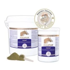 EQUIPUR – renal gleicht fütterungsbedingte Mängel an den Vitalstoffen wirksam aus, welche für eine optimale Nieren- und Blasenfunktion gebraucht werden. Eine eingeschränkte Nierentätigkeit führt nicht nur zu Störungen im Elektrolyt- oder Säure-Basen-Haushalt, sondern auch zu einer verminderten Entgiftung. Dies zeigt sich u.a. in einer reduzierten Lymphdrainage (angelaufene Beine). Eine Förderung der renalen Ausscheidung kann das Wohlbefinden und die Leistungsfähigkeit des Pferdes deutlich steigern.