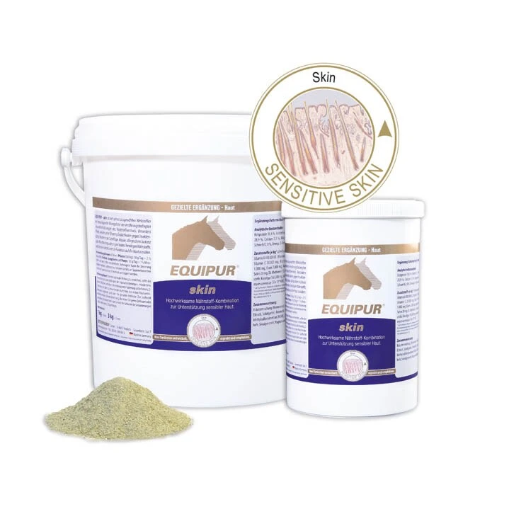 EQUIPUR – skin ist mit seinen ausgewählten Wirkstoffen ein hervorragender Bioregulator bei ernährungsbedingten Gesundheitsstörungen des Hautstoffwechsels. Besonders Pferde, welche unter Überempfindlichkeiten gegen Insektenstiche, Knoten in der Sattellage, Mauke, allergischem Juckreiz oder Wundheilungsstörungen leiden, benötigen Nährstoffe, welche eine stabilisierende Funktion auf die Haut ausüben.