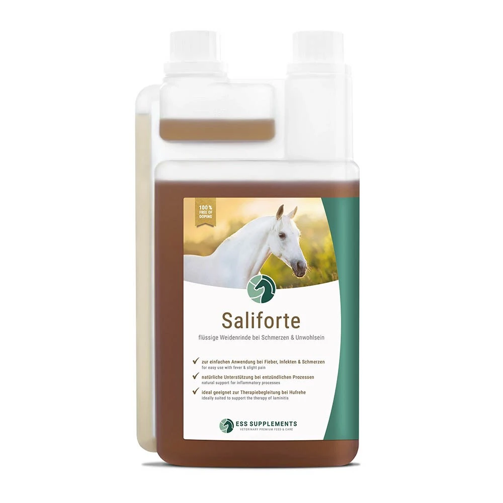 ESS Saliforte enthält Weidenrinde, die im Körper des Pferdes innerhalb kürzester Zeit zu Salicylsäure umgewandelt wird. Diese hat eine starke Ähnlichkeit mit der chemisch hergestellte Acetylsalicylsäure – in der Humanmedizin auch bekannt als „Aspirin“.