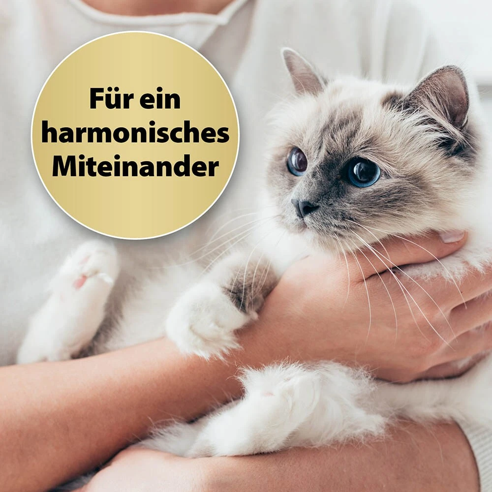 Das Felisept Beruhigungshalsband für Katzen ist eine anwendungsfreundliche und komfortable Lösung, Ihre Katze zu beruhigen. Um den Hals der Katze gelegt, gibt das Halsband kontinuierlich einen Extrakt des Duftstoffes Nepeta Cataria ab. Dieser natürliche Extrakt ist durch ein patentiertes Produktionsverfahren in eine Polymer- Matrix eingebettet und wird ausgegeben, sobald der Verpackungsbeutel geöffnet wird. Einmal geöffnet, wirkt das Halsband bis zu 30 Tage. Nehmen Sie das Halsband aus der Verpackung und legen Sie es Ihrer Katze wie in der Grafik dargestellt um. Das Halsband sitzt richtig, wenn zwei Finger breit locker zwischen dem Hals der Katze und dem Halsband Platz haben. Überlängen des Bandes bitte hinter dem Verschluss abschneiden. Das Halsband braucht beim Baden des Tieres nicht abgenommen werden. Das Halsband ist aktiviert, sobald der Verpackungsbeutel geöffnet wird. Nach Ende der Anwendungszeit kann bei erneutem Auftreten von stressbedingten Symptomen ein neues Felisept Beruhigungshalsband umgelegt werden. Durch einen Sicherheitsmechanismus löst sich das Halsband bei größerem Widerstand selbständig.