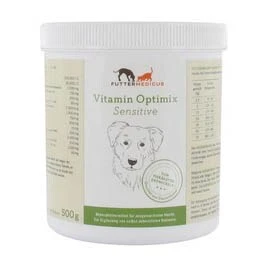 Das Vitamin Optimix Sensitive ergänzt selbstgekochtes Hundefutter auf Basis einer Fleisch-Kartoffel-Diät mit allen notwendigen Vitaminen und Mineralien.