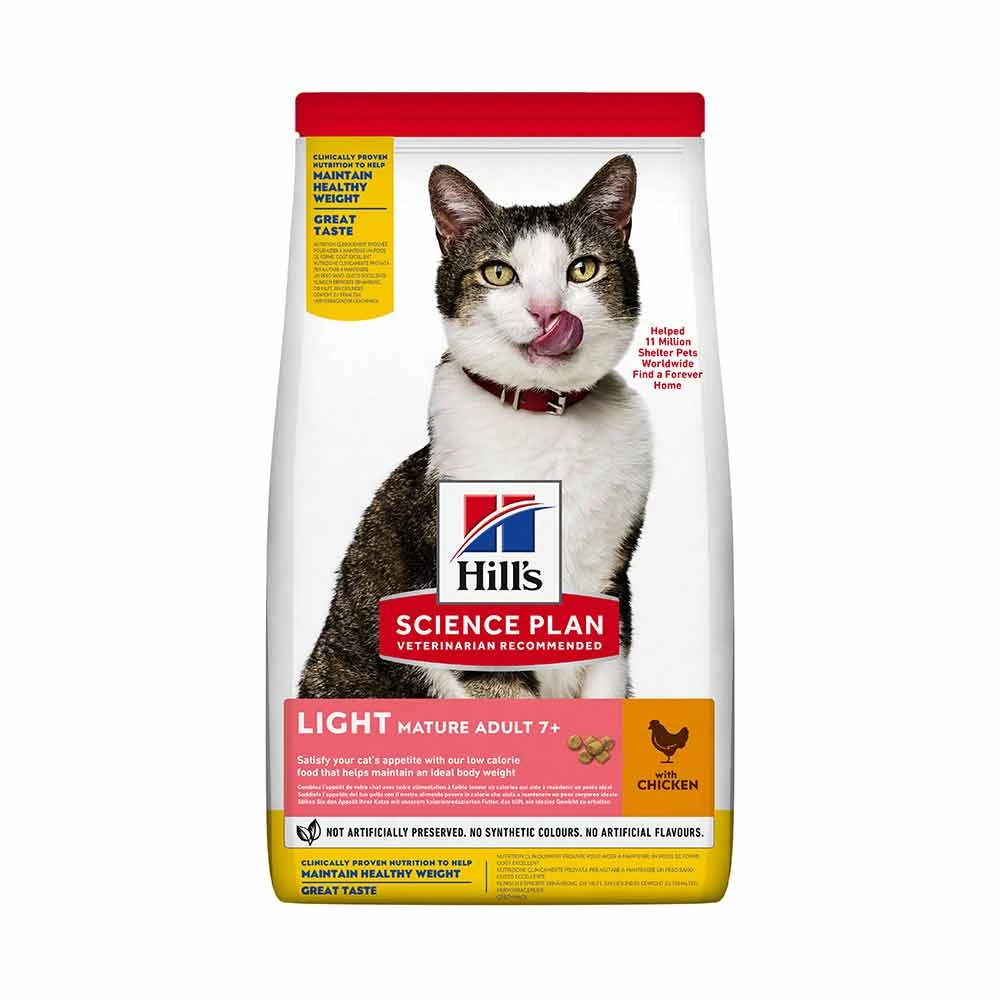 Die richtige Nahrung kann genau die richtige Starthilfe für Ihr Tier auf seinem Weg zum gesunden Gewicht sein. Hill’s SCIENCE PLAN Light Mature Adult Trockenfutter für Katzen liefert eine exakt abgestimmte Ernährung für weniger aktive erwachsene Katzen, die für einen gesunden Lebensstil ein kalorienreduziertes Futter benötigen, das ihnen hilft, ein gesundes Gewicht zu erhalten. Dieses Katzenfutter wird mit hochwertigen Zutaten und L-Carnitin hergestellt und hilft, bei Ihrer erwachsenen Katze ein ideales Gewicht zu unterstützen. Hochwertiges Protein und natürliche Fasern helfen, den Hunger Ihrer erwachsenen Katze zwischen den Mahlzeiten zu stillen und Vitamin E und Omega-6-Fettsäuren fördern ein glänzendes Fell und versorgen die Haut.