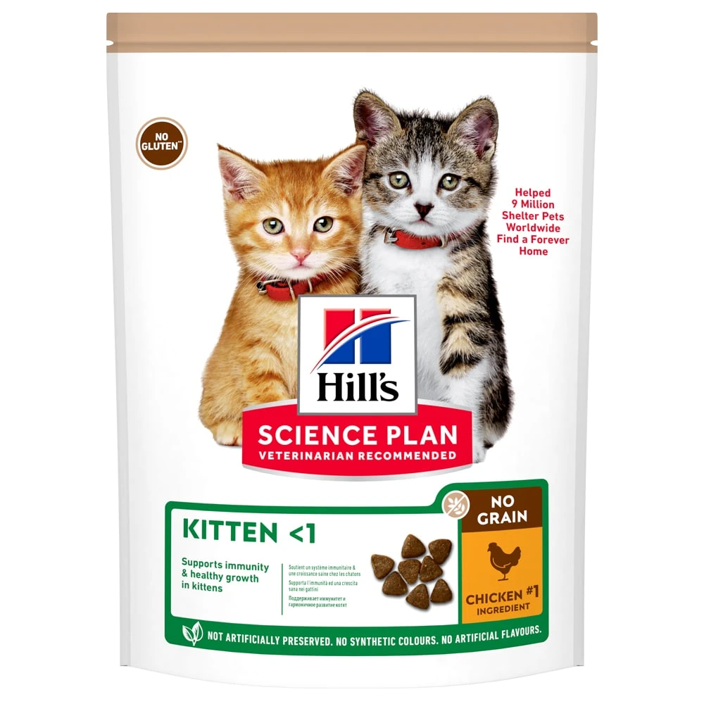 Ihr kleines Kätzchen benötigt eine Premiumnahrung, die mit seiner aktiven Lebensweise Schritt halten kann. Hills Science Plan No Grain Kitten Trockenfutter ist daher sorgfältig auf die Entwicklungsbedürfnisse von Kätzchen abgestimmt – damit sie optimal ins Leben starten und ihr Potential voll ausschöpfen können. Dieses Katzenfutter enthält DHA aus Fischöl für die gesunde Entwicklung von Augen und Gehirn, sowie hochwertiges Protein, welches das Muskelwachstum und die Entwicklung Ihrer jungen Katze unterstützt. Ausgewogene Mineralstoffe stärken Knochen und Zähne, damit Ihr Kätzchen in den ersten Jahren seines Lebens gesund bleibt und sich wohl fühlt.