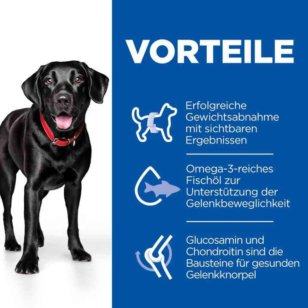 - Klinisch erprobtes Trockenfutter für erwachsene Hunde zum Gewichtsmanagement und zur Unterstützung der Beweglichkeit der Gelenke