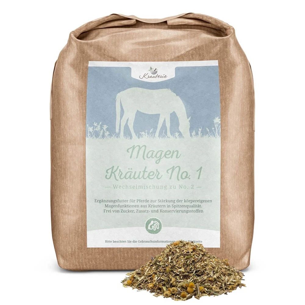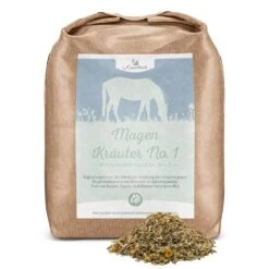 Die Magen Kräuter No. 1 aus der Krauterie sind ein Zusatzfutter für Pferde aus natürlichen Pflanzenkomponenten. Sie stärken die körpereigene Magenfunktion und unterstützen die natürliche Funktion der Magenschleimhaut. Damit kann die Mischung zum Beispiel ein guter Begleiter für stressige Zeiten sein.