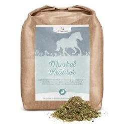 Die Muskel Kräuter aus der Krauterie sind ein Zusatzfutter für Pferde, das die Muskeln mit einem Extra an natürlichen Nährstoffen versorgt und die körpereigene Muskelfunktion stärkt. Die Mischung besteht ausschließlich aus hochwertigen Pflanzenzutaten – sie ist frei von Füll-, Konservierungs- und anderen Zusatzstoffen. Vielseitige Pflanzen sind ein natürlicher Bestandteil artgerechter Pferdeernährung. Die Muskel Kräuter können z. B. bei intensivem Training oder beim Aufbautraining des Pferdes gefüttert werden – ganz nach individuellen Bedürfnissen des Pferdes.