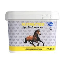 Nutrilytes® High Performance Pellets unterstützen das Pferd durch hochdosierte Elektrolyte sowie Zink, Kupfer und Eisen bei besonders starkem Schwitzen nach extremen sportlichen Anstrengungen, bei Transporten oder Stress. Zusätzlich enthalten die Pellets Aminosäuren, einen Vitaminkomplex und Antioxidantien. Damit sind die Nutrilytes® High Performance Pellets der ideale Allrounder zur Unterstützung der Regeneration für Pferde im Hochleistungssport.