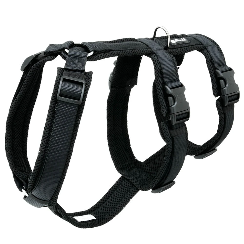 - Stufenlos verstellbar an Hals-, Brust- und Bauchriemen