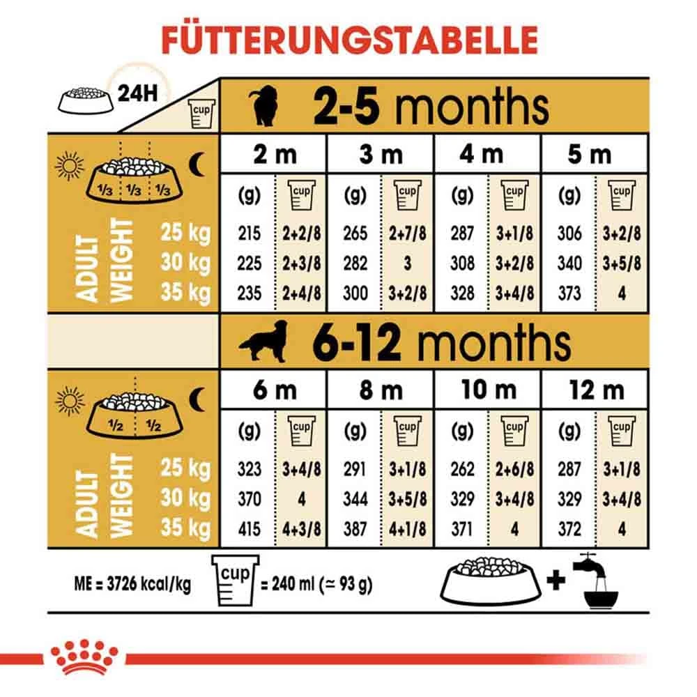 Das Wachstum ist eine wichtige Phase im Leben eines Welpen. Deshalb ist es wichtig, Ihren Welpen von Anfang an mit den Nährstoffen zu versorgen, die zur optimalen Gesundheit beitragen. ROYAL CANIN Golden Retriever Puppy ist für Golden Retriever Welpen bis zu 15 Monaten geeignet und wurde speziell auf die Bedürfnisse dieser Rasse abgestimmt.
