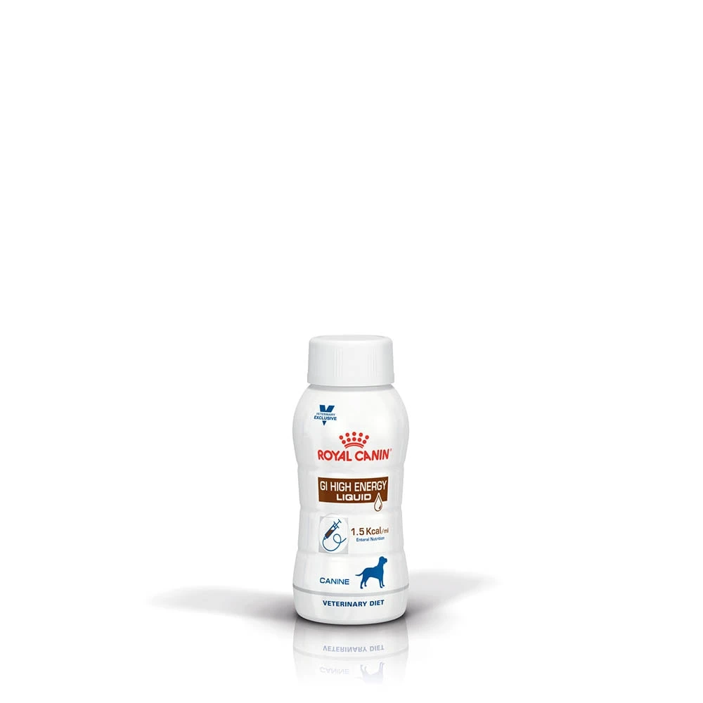 Royal Canin® GI High Energy Liquid ist ein Diät-Alleinfuttermittel für Hunde zur Linderung akuter Resorptionsstörungen des Darms und zur ernährungsphysiologischen Wiederherstellung und Rekonvaleszenz. Diese Diätnahrung enthält einen hohen Energiegehalt, leichtverdauliche Ausgangserzeugnisse, hohe Konzentrationen wichtiger Nährstoffe und einen erhöhten Elektrolytgehalt. EMPFEHLUNGEN: Bis zur vollständigen Genesung füttern. Verabreichung unter tierärztlicher Aufsicht.