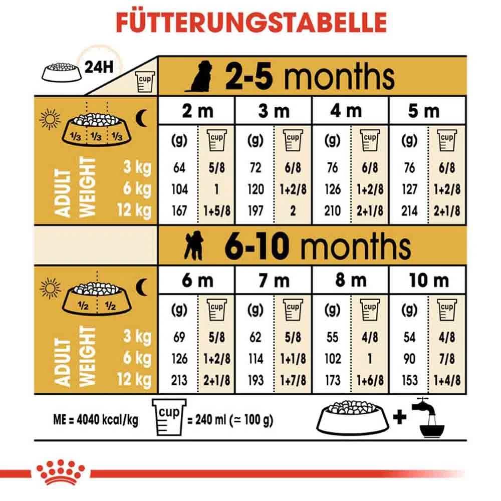 ROYAL CANIN Poodle Puppy wurde speziell für Pudel Welpen bis zu 12 Monaten entwickelt. Dank eines exklusiven Antioxidanzienkomplexes (einschließlich Vitamin E) hilft das Welpenfutter dabei, die körpereignen Abwehrkräfte zu unterstützen, während sie sich allmählich entwickeln. Weiterhin enthält ROYAL CANIN Poodle Puppy eine spezielle Kombination von Nährstoffen mit hochwertigen Proteinen (L.I.P.), die speziell für ihre hohe Verdaulichkeit ausgewählt wurden.