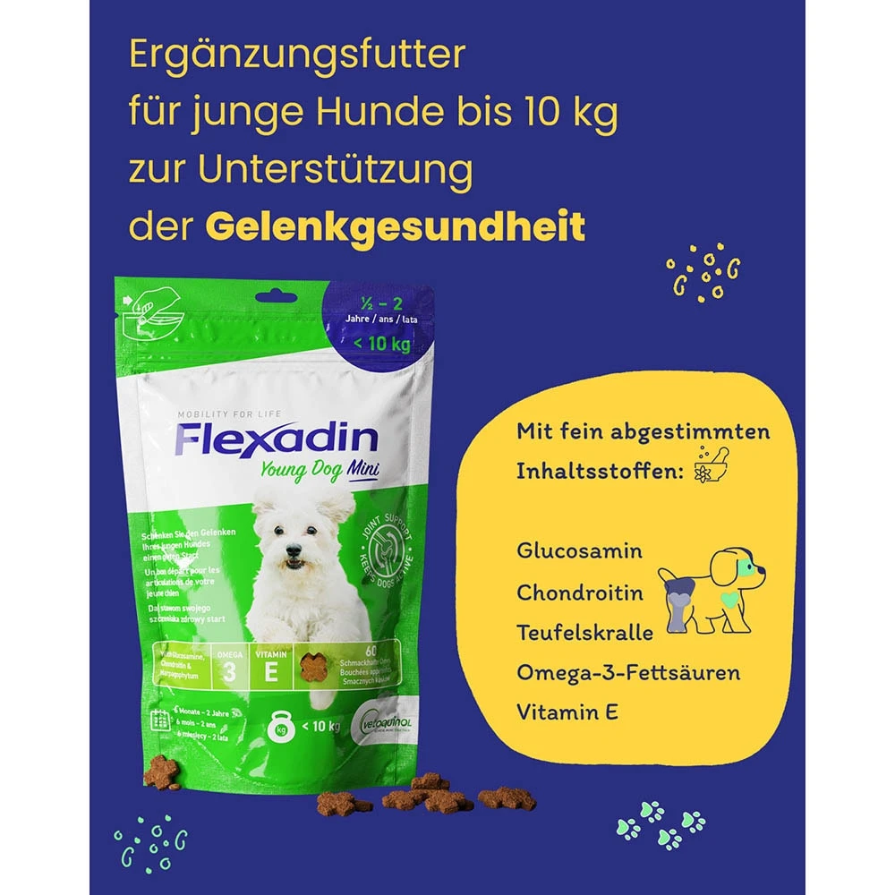 Lebensfreude ein Leben lang – Lebensqualität und Mobilität bei Hunden von Anfang an erhalten mit Flexadin® Young Dog Mini.
